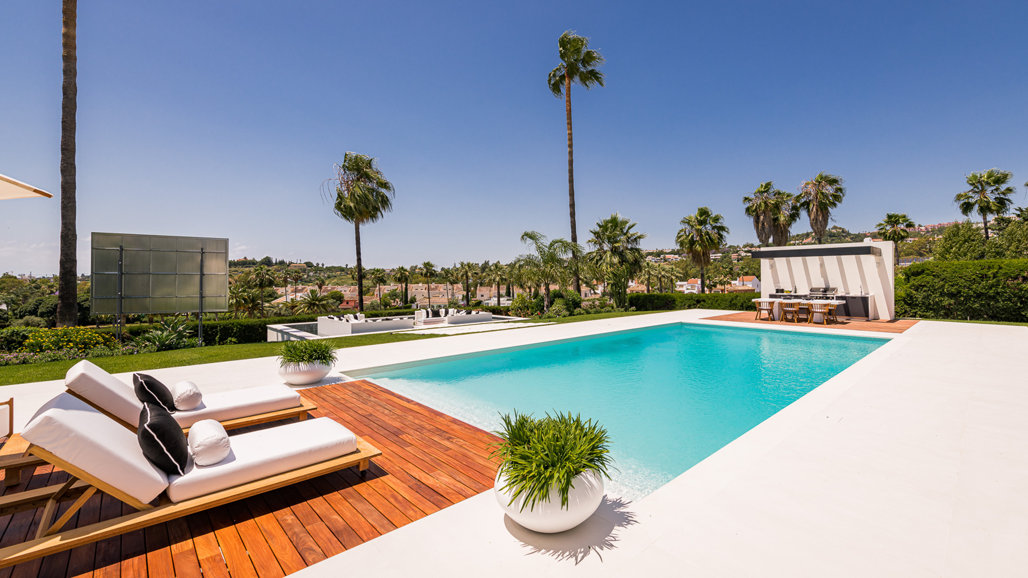 Expansive open living spaces flow seamlessly into elegant lounges, a designer Italian kitchen, and beautiful outdoor terraces. The landscaped gardens feature an oversized heated pool, tranquil chill-out areas, and an outdoor BBQ kitchen — perfect for long alfresco dinners, relaxed afternoons by the pool, and evenings under the Mediterranean sky.